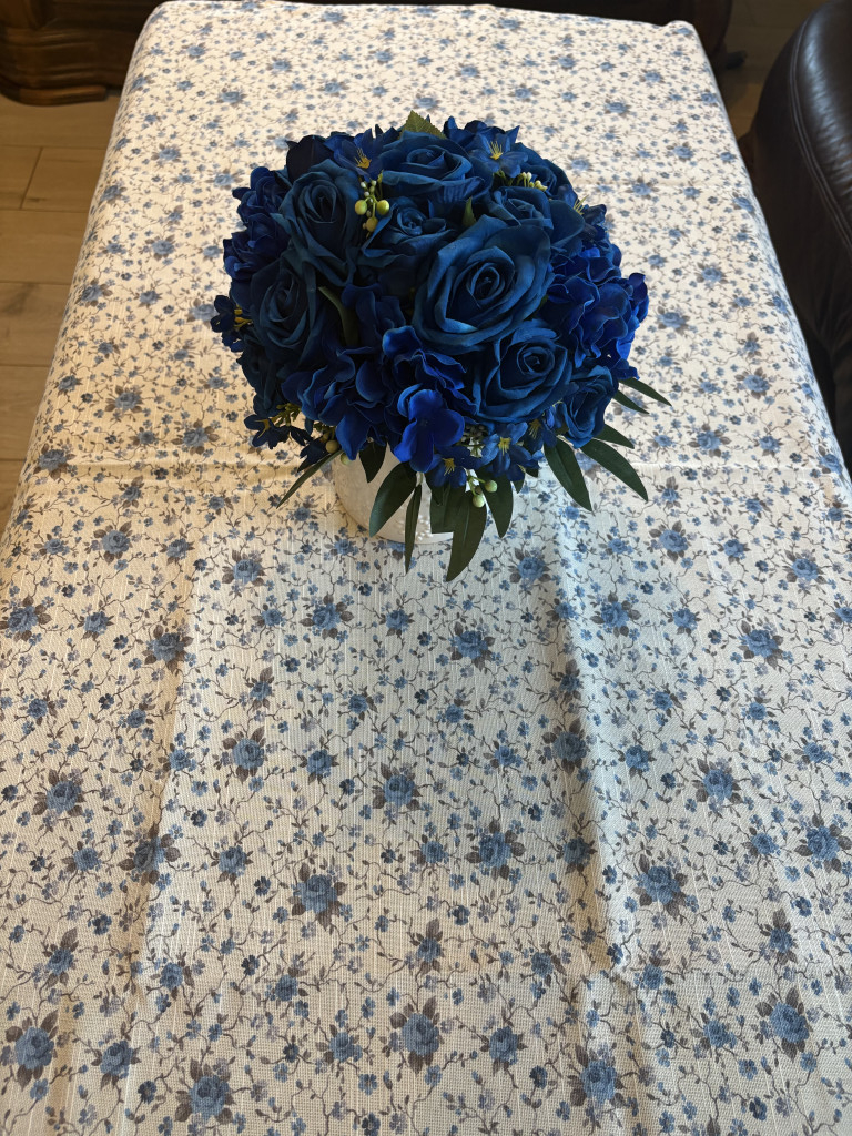 Bavlněný ubrus - Modré kvítky na béžové